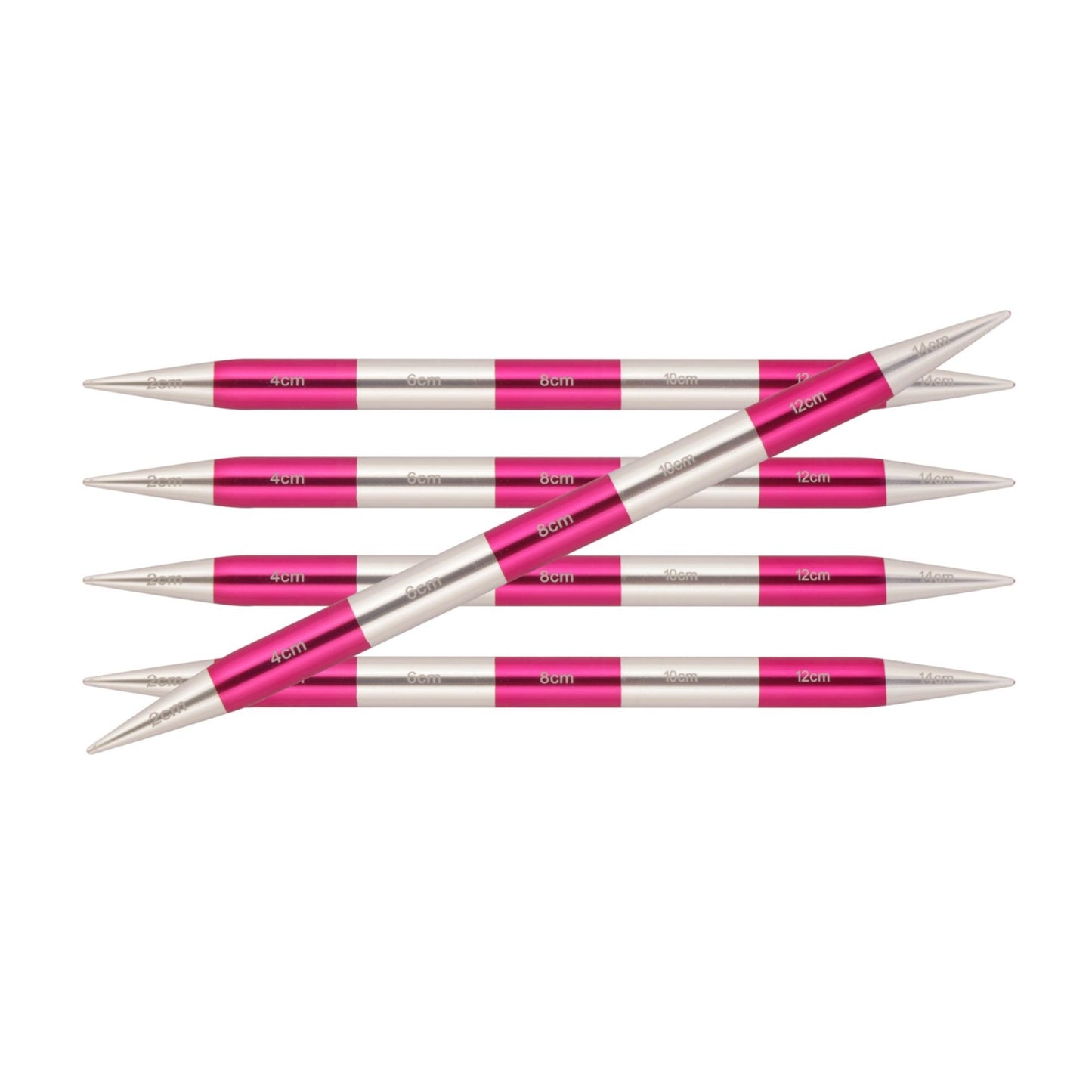 Die Farbintervalle jeder Sockennadel wechseln in präziser Lasergravur alle zwei Zentimeter, sodass sie nicht nur als Stricknadel, sondern auch als praktisches Maßband verwendet werden kann. Diese doppelte Funktion macht die Nadel zum perfekten Werkzeug für jedes Strickprojekt! Hergestellt aus hochwertigem Leichtmetall bieten die Nadeln eine angenehme Haptik und liegen komfortabel in der Hand. Mit ihren exakt geformten Spitzen sind sie ideal für jedes Garn – von feinen Fäden bis hin zu dickeren Materialien – und garantieren präzises Arbeiten bei jeder Art von Projekt, sei es Socken, Schals oder andere Strickkreationen.