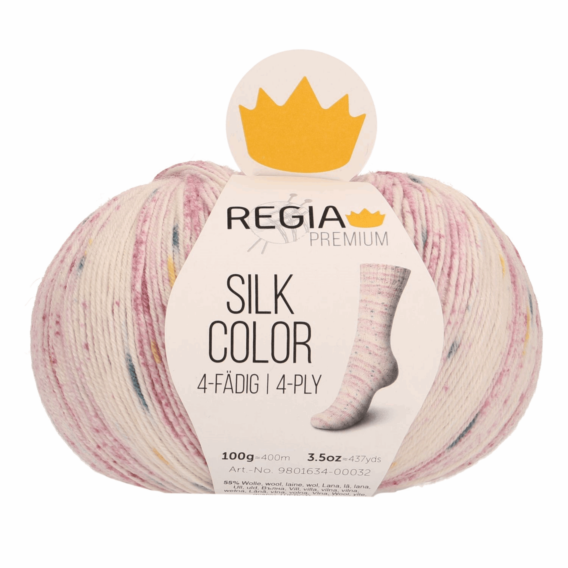 Regia PREMIUM Silk Color beinhaltet wie die einheitliche Variante eine Mischung aus hochwertiger Merinowolle und Seide, was sie unglaublich weich, glänzend und temperaturausgleichend macht. PREMIUM Silk Color harmoniert perfekt mit den einfarbigen Uni-Farben der PREMIUM Silk und lässt sich genauso einfach stricken wie unser Regia 4-fädig Garn. Darüber hinaus zeichnet es sich durch seine Formbeständigkeit und Elastizität aus – wahrer Luxus für die Füße.