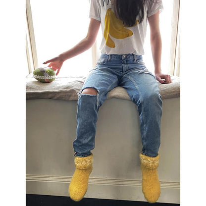 Gefilzte Socken mit Schneekristall. Aus Thema 57, Weihnachten